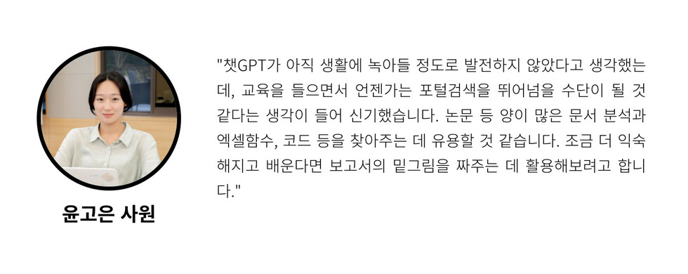 지난 13일 토토 카지노이 주니어 직급 14명을 대상으로 서울 종로구에 위치한 토토 카지노인재개발원에서 일상과 업무 속에서 활용가능한 챗GPT와 AI툴에 대한 클래스를 진행했다. 특히나 인상 깊었던 몇 가지 AI툴을 소개하고자 한다.