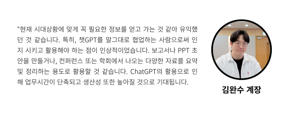 유장휴 AG브릿지 대표와 함께 진행된 이번 강의를 통해, 위의 툴 외에도 챗GPT를 활용한 데이터 분석 및 시각화 방법은 물론 챗GPT API를 활용한 스프레드시트 활용법까지 실제 업무에서 유용한 방법들을 익힐 수 있었다. 기본적인 챗GPT에 대한 강의가 아닌, 보다 실용적이고 심도있는 교육에 참여자들 역시 열띤 호응을 줬다.