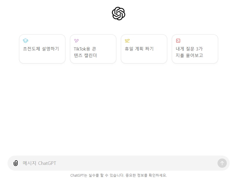 A. 업무에 활용할 때 가장 중요한 것은 질문, 즉 '프롬프트'를 잘 작성하는 것입니다. '프롬프트'는 챗GPT를 처음 켰을 때 나타나는 아래와 같은 화면을 말합니다.