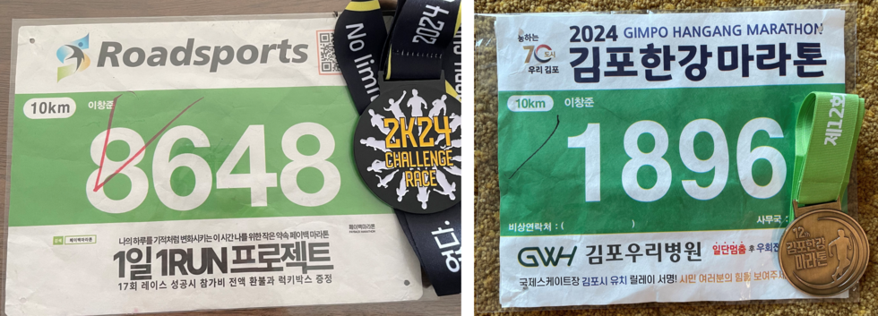 5KM 달리기 목표를 세우고 운동화도 사면서 처음으로 달리기 시작했고, 10KM로 점차 목표를 높여 올해 2월 여의도 챌린지 마라톤을 신청해 첫 출전에 완주하고, 4월에 김포한강마라톤 10KM도 완주했습니다.