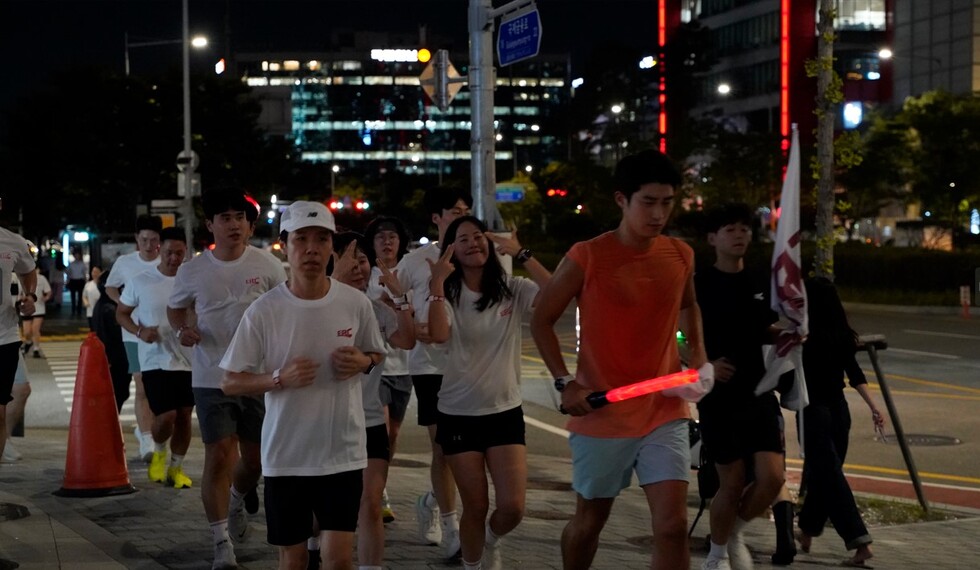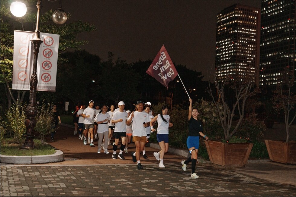 지난 30일 여의도 유진빌딩 1층. 저녁 7시가 되자 셔츠와 블라우스로 가득했던 실내는 어느새 운동복 차림의 러너들로 붐볐다. 지난 9월 5일부터 30일까지, 매주 목요일 저녁 7시에 진행되는 유진투자증권의 ‘유진러닝크루(ERC, Eugene Running Crew)’ 클래스 현장이다.